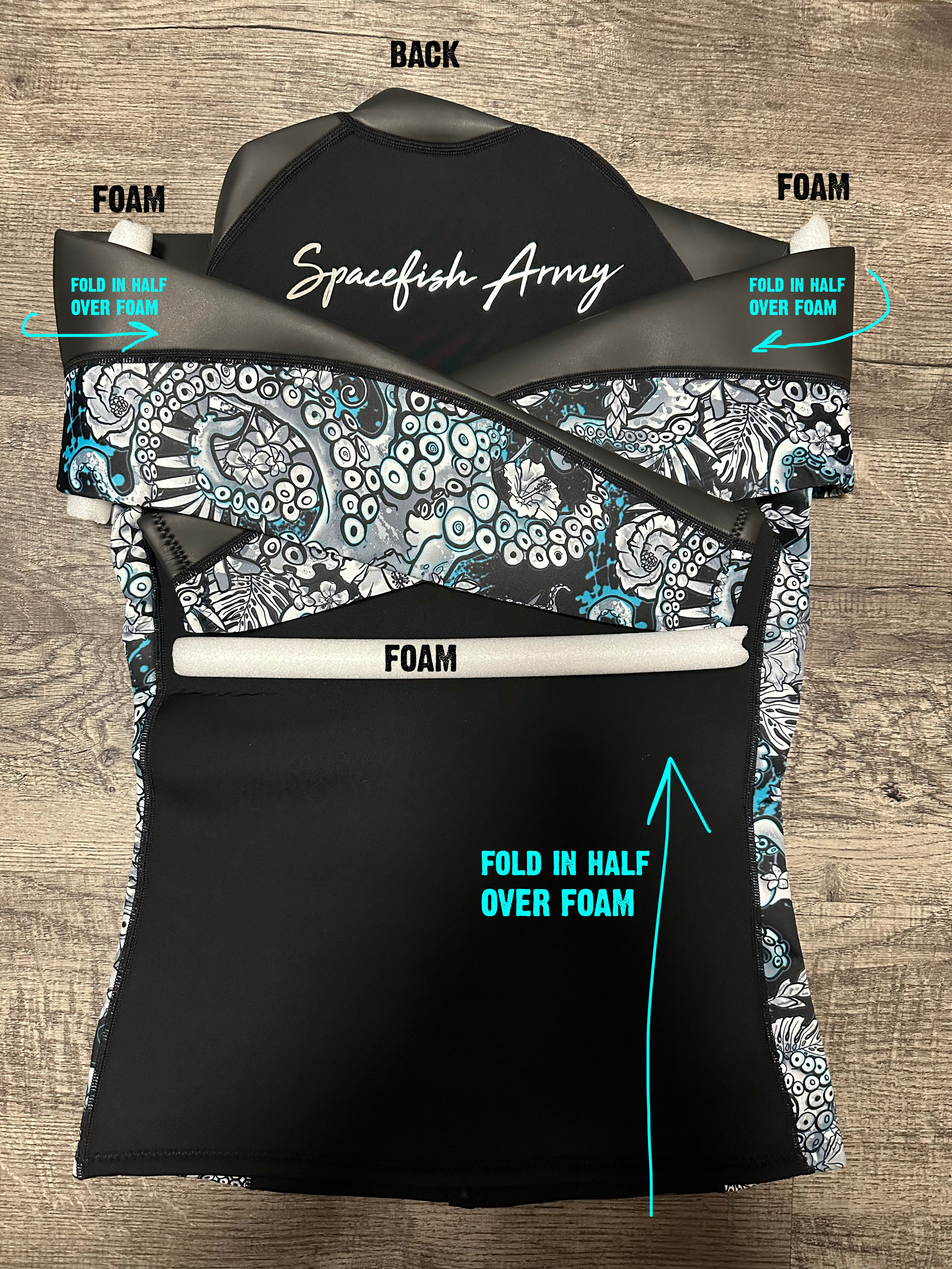 Please see picture below for placement of foam rollers. Neoprene items returned in small boxes or folded incorrectly causing excessive creasing not be accepted.